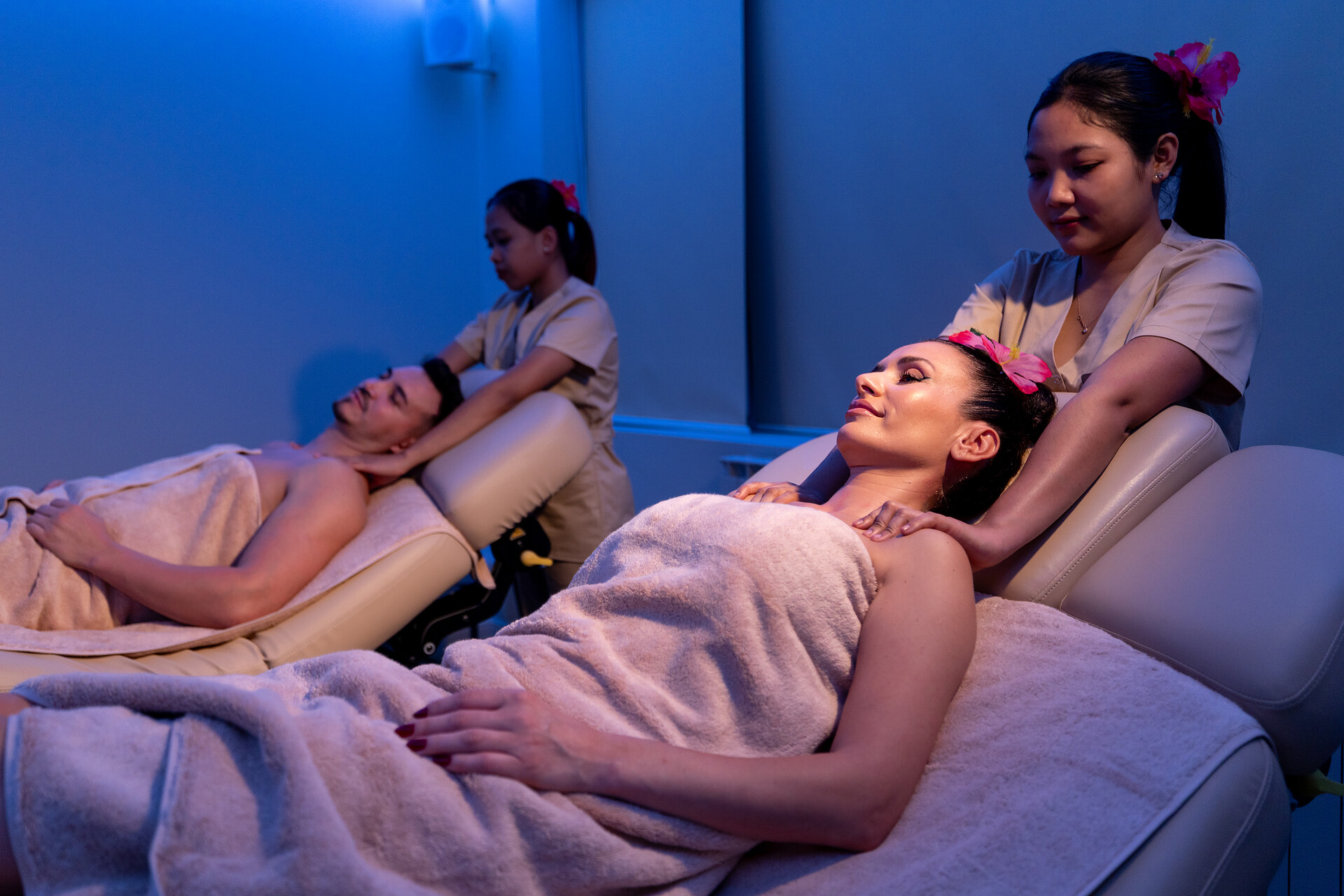Un alt element definitoriu al experienței premium este mediul în care se desfășoară ședința. Lumina caldă, muzica ambientală și aromele delicate creează cadrul perfect pentru relaxare profundă. Fiecare detaliu, de la temperatura camerei la calitatea uleiurilor folosite, contribuie la transformarea ședinței într-o experiență memorabilă.